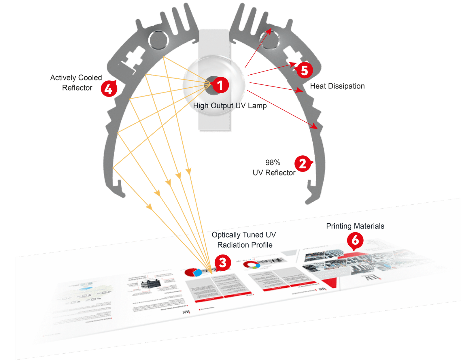 Die Quecksilberlampen von IUV sind mit flachem Quarzglas ausgestattet, das die Lampe von den bedruckten Materialien isoliert.