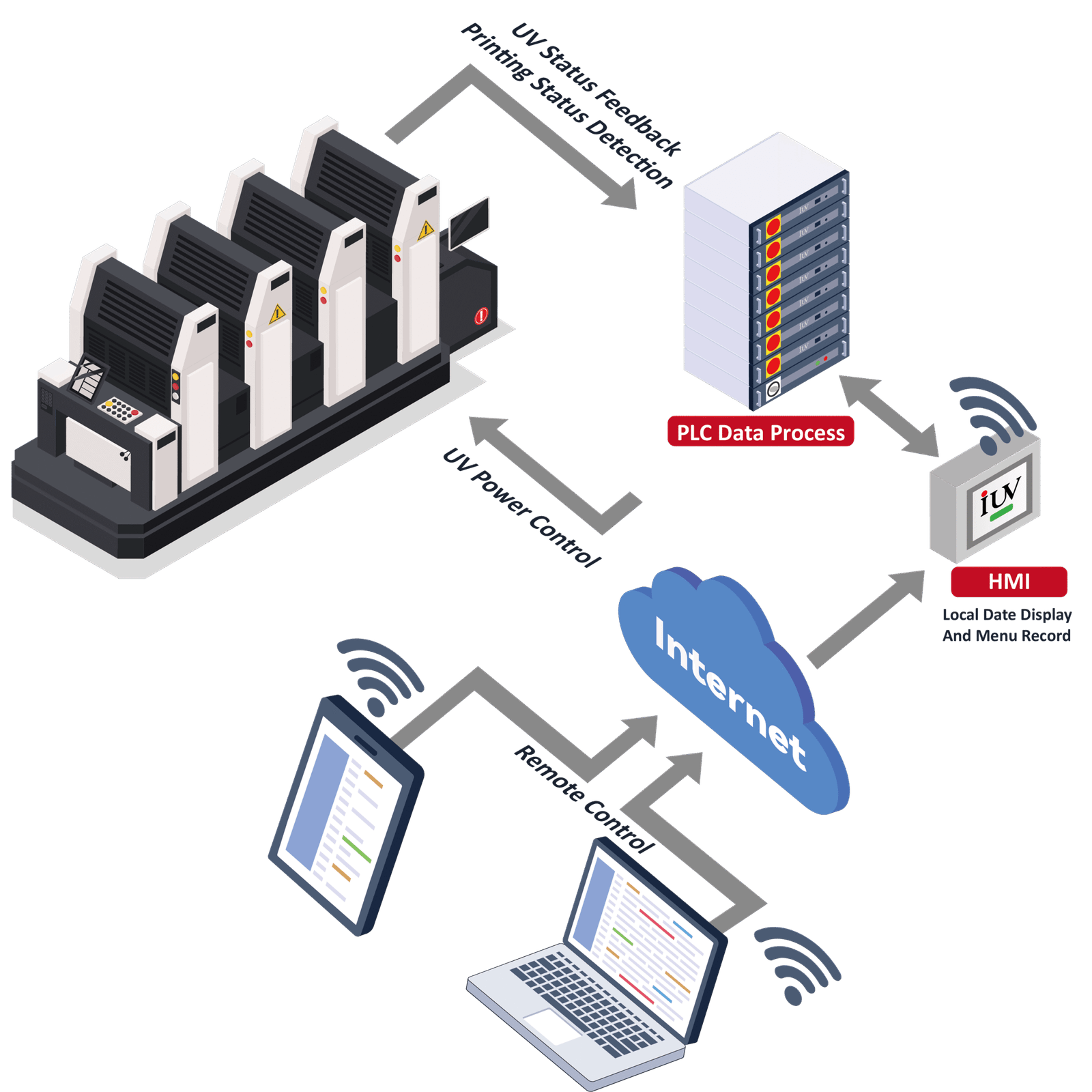 - Das IUV-System ermöglicht es Geräten auf der ganzen Welt, über Netzwerkkabel, WLAN und andere Internetzugangsmethoden eine Verbindung zum Cloud-Server herzustellen. Von einem PC oder Mobiltelefon aus können Benutzer jederzeit und von überall auf die Echtzeit-Datenerfassung, Fehlerdiagnosen und Software-Updates zugreifen.
